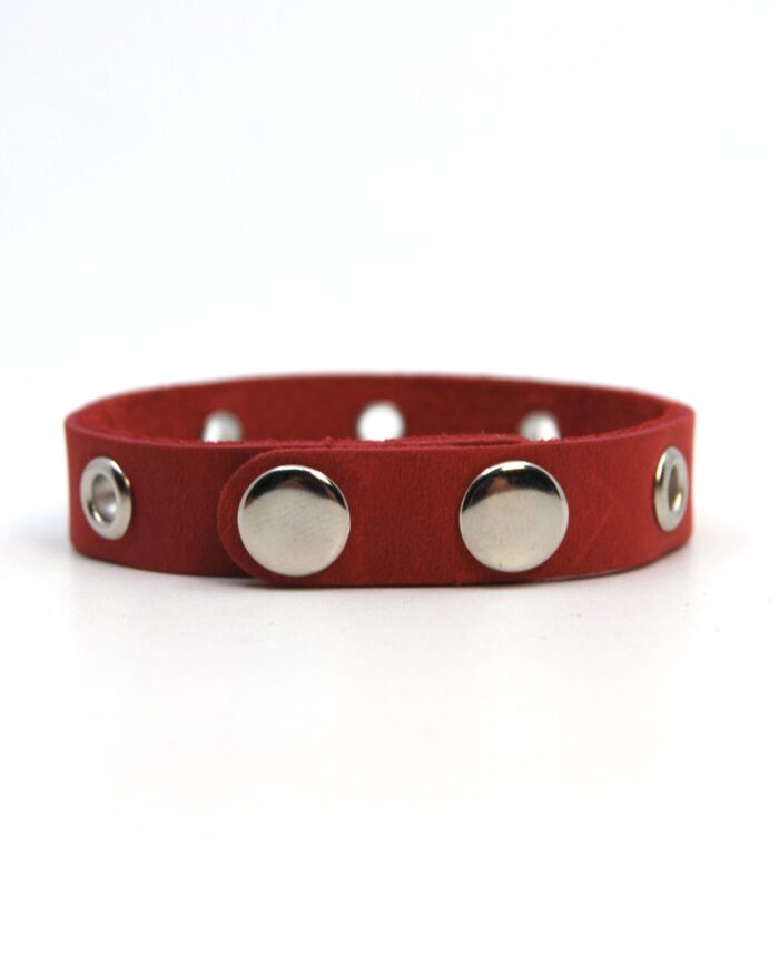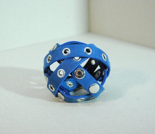 Natūralios odos apyrankė, viduryje kniedėmis pritvirtintas bronzos spalvos inkaras, užsegimas – dvi spaudės